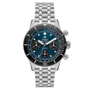 Originally launched in the late 60s, the Zodiac Sea-Chron was introduced as an evolution of the iconic Sea Wolf design. The Zodiac Sea-Chron is visually distinguished by its three sub-dials and two pushers, which start and stop the chronograph function without interfering with the watch’s basic time-telling functionality. Whether you’re a sportsman, engineer, technician, physician, or in the military, the Zodiac SeaChron is the perfect watch for anyone who works or plays in the three dimensions of time, speed, and distance.