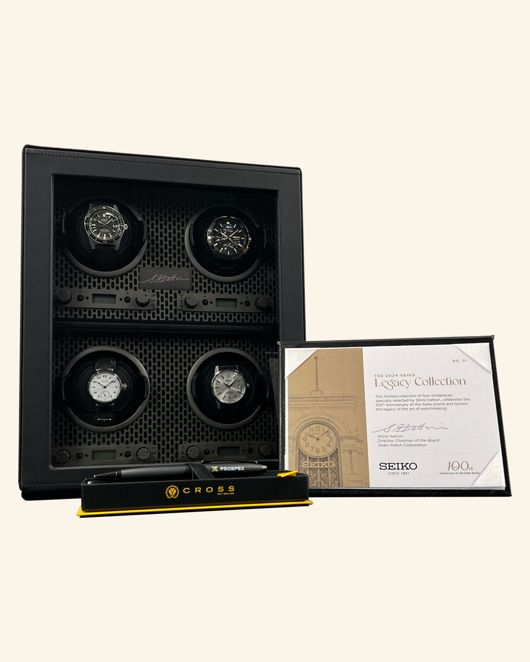 To celebrate 100 years of the the Seiko brand and to honor the legacy of Seiko’s founder, Kintaro Hattor, this extraordinary set includes four of Seiko’s most prestigious Limited Edition models, one from each of the four Luxe collections: Prospex, Presage, King Seiko, and Astron.