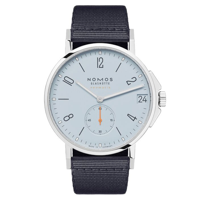 This watch does its job with ease. And it suits every occasion. Our highly water-resistant watch Ahoi is now available with a diameter of just 38.5 millimeters and—for the first time—with the innovative and super-slim Neomatik caliber DUW 6101. This in-house automatic movement features our patented date mechanism. Even with a sapphire crystal case back, the case measures just 9.9 millimeters in height. The result is a most elegant interpretation of a sports watch. Every glance at the dial brings the sense of limitless freedom—as refreshing as a brisk sea breeze.