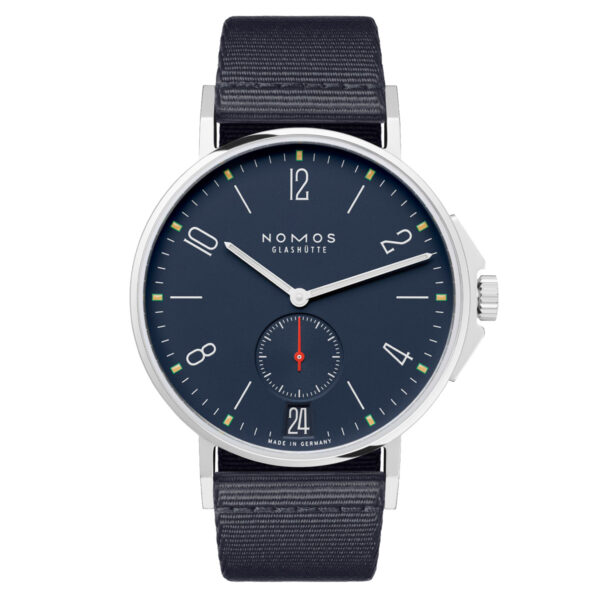 Always there: An automatic watch for any kind of sport and for relaxing afterwards. Ahoi Atlantic is large, robust, and water-resistant up to 200 meters. The design of the dial in crisp colors ensures perfect readability whatever the weather. The NOMOS DUW 5001 automatic caliber reliably keeps the time in this model.
