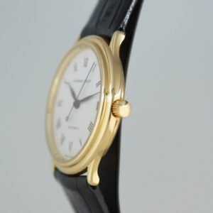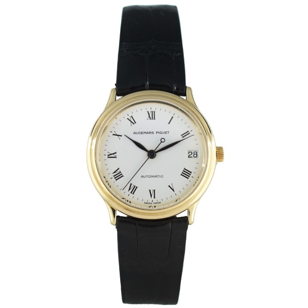 This Audemars Piguet vintage Classic features a 34mm 18K YG round case, white Roman dial and automatic movement.