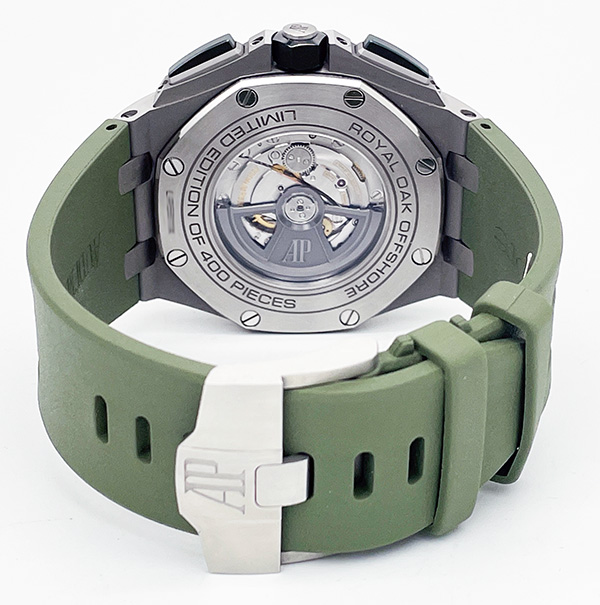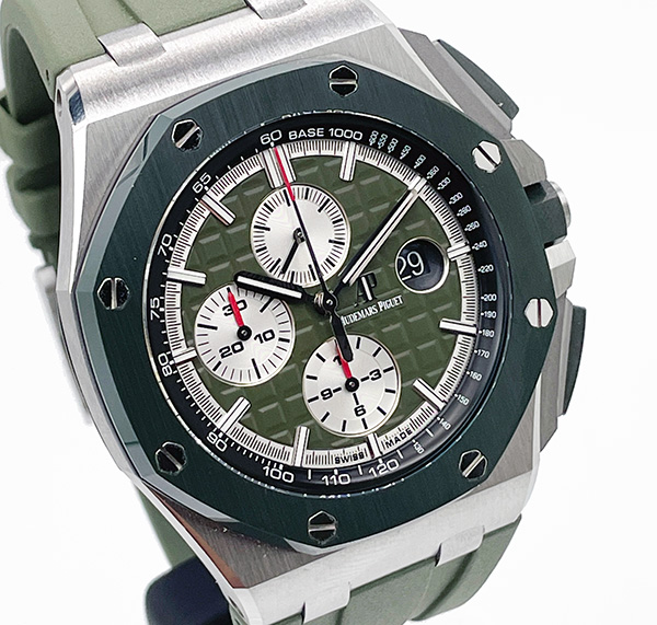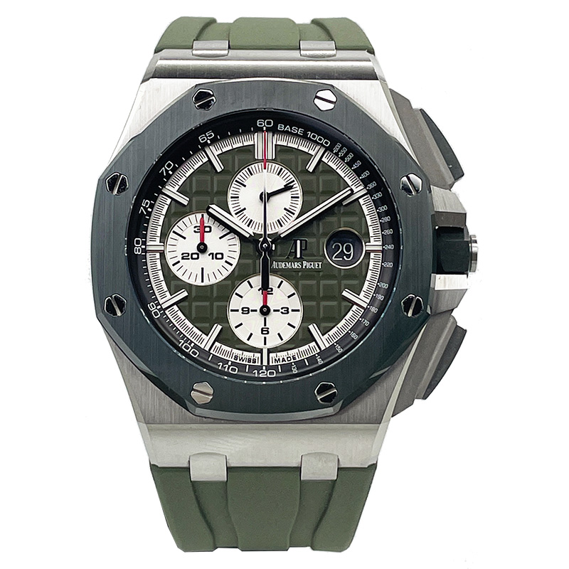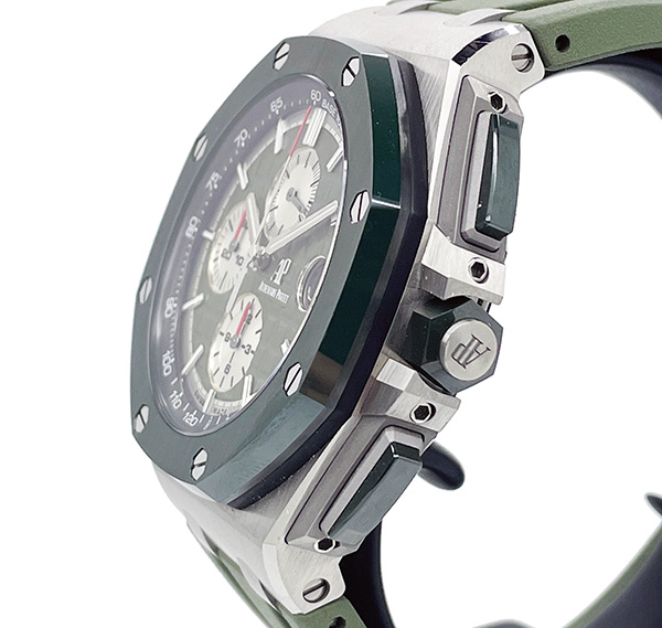 Mint condition Audemars Piguet Royal Oak Offshore 26400SO.OO.A044CA.01 limited edition in stainless steel & green ceramic. Limited to 400 pieces.
