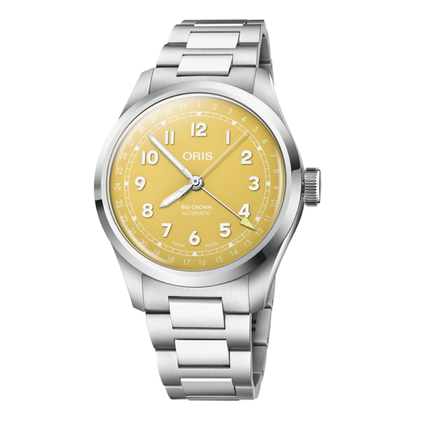 “Sunshine state of mind” Meet the Big Crown Pointer Date with a bright sunshine yellow dial. Cased in 40.00 mm of stainless steel and set on an H-link bracelet with an Oris-developed clasp, it’s an icon reimagined to bring a smile to your face every day.