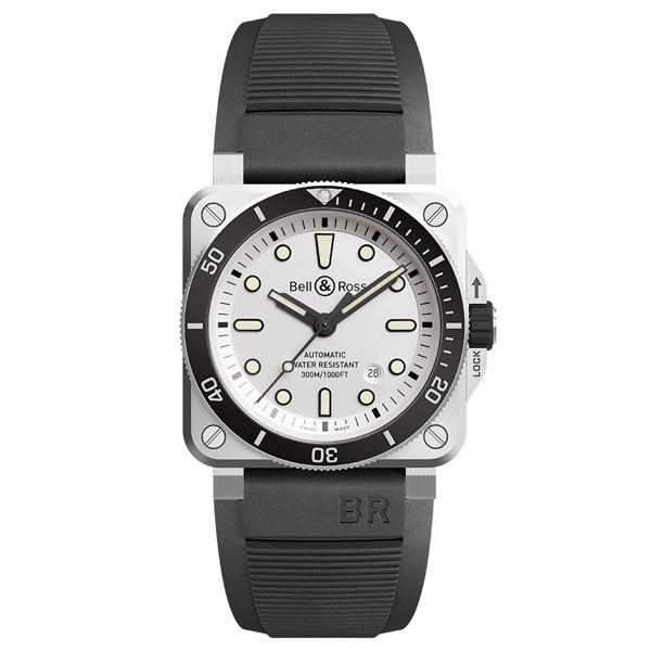 Divers are fascinated by icy seas, polar oceans and frozen lakes, and some bold adventurers set out to explore these mysterious cold-covered expanses. For the intrepid few, Bell & Ross has developed the BR 03-92 Diver White. Readable, functional and reliable, the Bell & Ross BR 03-92 Diver White is the ideal professional tool for scuba diving in icy zones. Its immaculate hue is reminiscent of snow and ice floes, yet this sporty chic watch also works in the city, giving the wearer a stylish look. This is a watch that will seduce design enthusiasts and seasoned divers alike.Waterproof and robust, the BR 03-92 Diver White meets the demanding specifications of the Swiss diving watch, complying with the ISO 6425 standard.