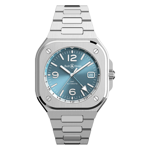 The BR 05 GMT Sky Blue features a blue sunray dial and a clear, simple second time zone indicated by a fourth hand.