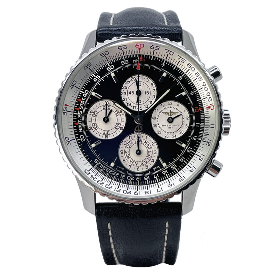 Breitling Navitimer 1461 in excellent condition. Limited edition to 1,000 pieces. Featuring a chronograph, week indication and triple calendar. On a factory Breitling leather strap with folding deployant clasp.