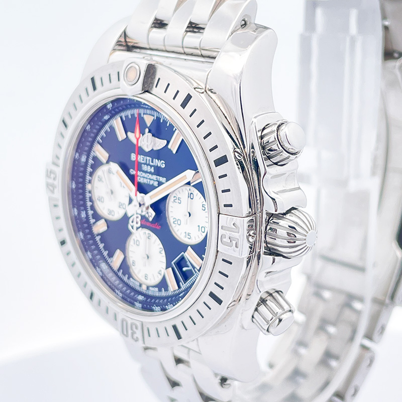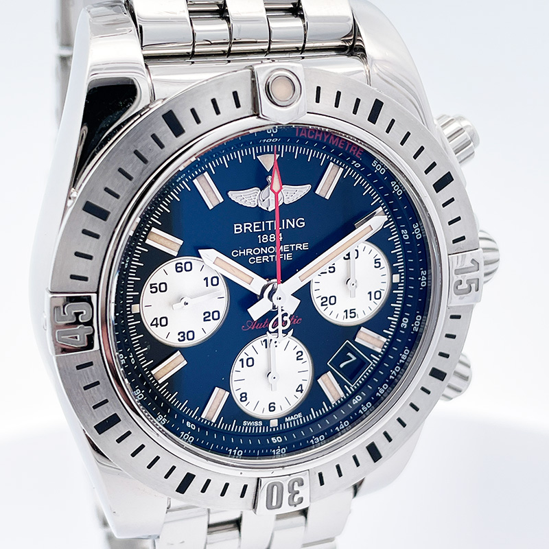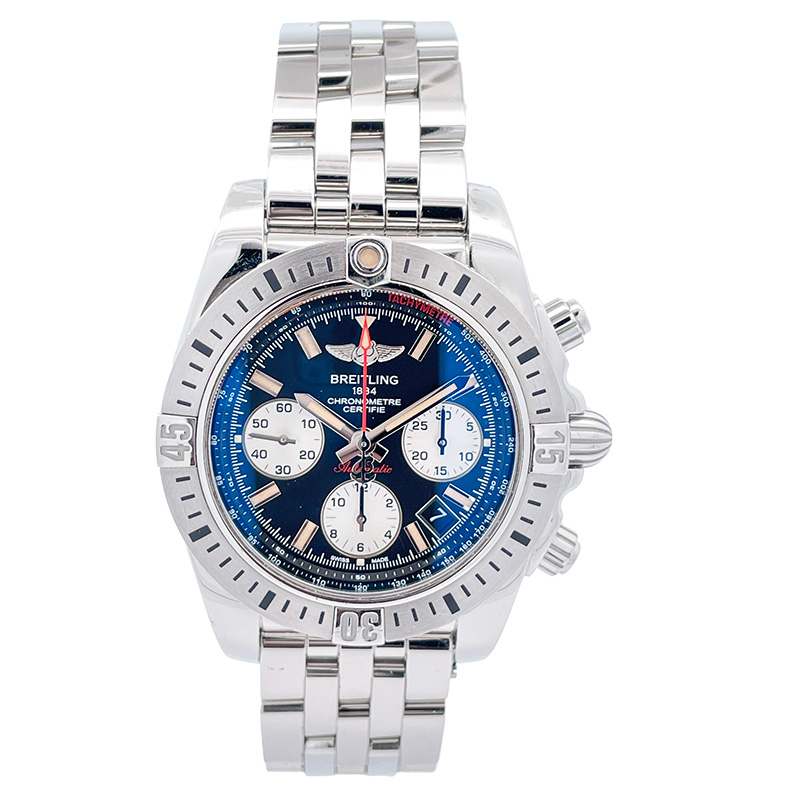 Pre-owned Breitling Chronomat Airborne AB01442 in stainless steel with a black dial and stainless steel bracelet.
