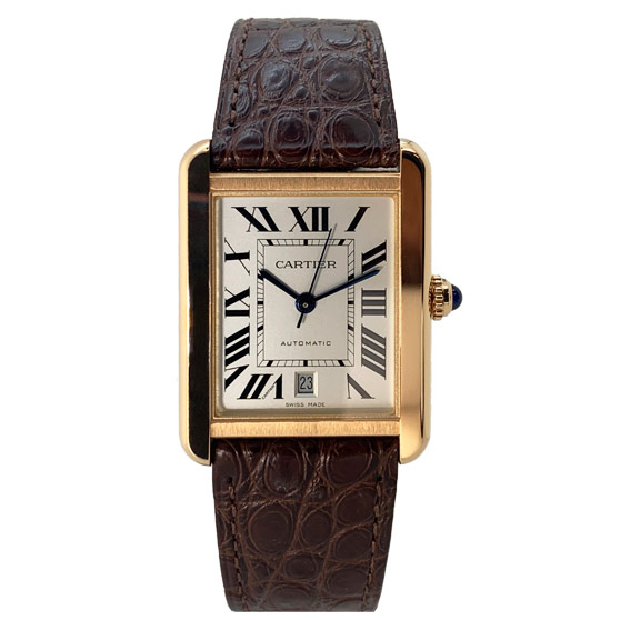 A classic Cartier Tank but modernized. This Cartier Tank Solo features the XL 18K rose gold for a updated take a classic. This piece is in excellent with minimal wear and comes on an original Cartier strap and RG pin buckle and the original box & papers (card dated 2019)