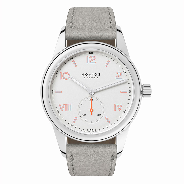 A watch for many occasions. Club Campus deep pink features a robust, highly polished steel case with a wide bezel and is water resistant up to 100 meters. Superluminova-coated numerals, hands and hour markers glow blue in the dark and underwater. The dial is contrasting and clear. Minute and second numerals in white increase readability, while the second hand makes its rounds in neon orange. The hand-wound watch from Glashütte is driven by the reliable NOMOS caliber Alpha. Deep pink stands for a positive attitude to life. This watch is a symbol of motivation to achieve goals and encouragement to forge new paths.