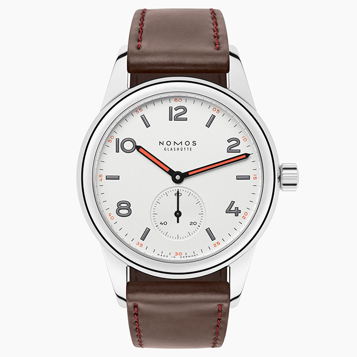 This youthful wild spirit with a thick steel bezel and robust lugs is the perfect watch for life. Black-and-red hands set the tone, while the striking numerals and indexes characterize the white silver-plated dial. The sapphire crystal glass back protects the hand-wound Alpha caliber from NOMOS within—as only a diamond would be harder.