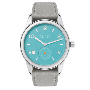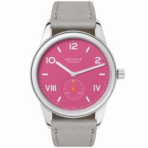 A watch for many occasions. Club Campus Night  features a robust, highly polished steel case with a wide bezel and is water resistant up to 100 meters. Superluminova-coated numerals, hands and hour markers glow blue in the dark and underwater. The dial is contrasting and clear. Minute and second numerals in neon orange increase readability, with the second hand also making its rounds in neon orange. The hand-wound watch from Glashütte is driven by the reliable NOMOS caliber Alpha.