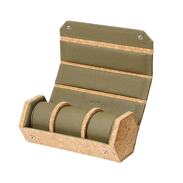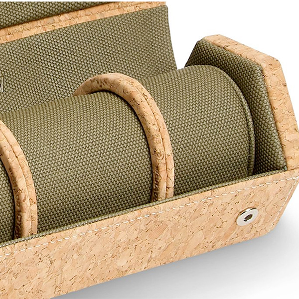 Inspired by the original box for a very special watch Cortiça is hand made from sustainably grown Portuguese cork. The watch roll’s unique hexagonal shape allows it to lay flat, displaying up to three watches against the khaki green interior. The watch roll simply fastens together for travel or to be stored neatly on a dresser.