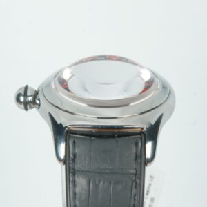 Excellent condition Pre-Owned Corum Bubble GMT in stainless steel with a high domed “bubble” sapphire crystal. On the original black alligator strap with the stainless steel double folding clasp.
