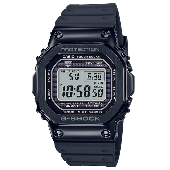 From G-SHOCK, the watch brand that is constantly setting new standards for timekeeping toughness, come new colors for the GMW-B5000 lineup of timepieces with metal cases and soft urethane bands. The cases, buckles, band rings, and other metal parts of these watches are ion plated for beautiful colors. The hairline and mirror finishes of the metal bezels add a distinctive touch of elegance, and the band is made of soft urethane for an exquisitely comfortable fit to the wrist.