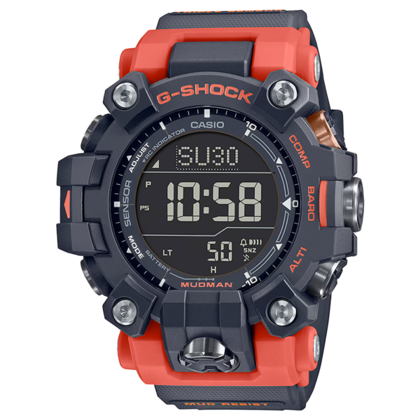 Slim, yet powerful, this MUDMAN design packs full-on functionality in a striking exterior built with an intricate combination of components. The digital compass is more practical than ever thanks to the dual-layer LCD, which displays compass graphics on the top layer and time and other readings on the layer below. The GW-9500-3 and GW-9500-1A4 feature a negative dual-layer LCD. Taking utility to a whole new level, radio-controlled solar power delivers precision timekeeping powered by light, while Super Illuminator ensures visibility, even in dark places.