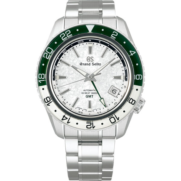 Imagine a valley where the highest peaks are capped with snow, even in summer. Such a snowy valley enchants the hearts of those who happen to glimpse its rare scenery. In the SBGJ277, the green of the rotating bezel contrasts with the pure white of the finely molded dial pattern, evoking this special mountain scene. One characteristic of this model is its prominent rotating bezel, which imparts a sporty character and allows wearers the ability to check the time in up to three different time zones. The watch houses the mechanical Hi-Beat 36000 GMT Caliber 9S86, which runs at ten beats per second while offering excellent rate stability and resistance to outside interference.