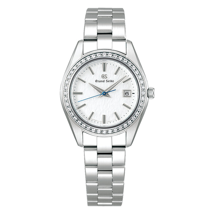 The pristine dial beautifully expresses the magnificent color of a snowy landscape in the Hotaka mountains, which can be seen from the Shinshu Watch Studio where this model is produced. This “snowflake” dial features a detailed pattern that exudes the aesthetic sense of Grand Seiko, portraying an unspoiled, windswept snowfield. The shimmering color of the blued steel seconds hand and the dazzling set of 44 diamonds on the bezel combine to produce a wide variety of visual expressions depending on the light. Easy to match with any style of dress, this model’s refined elegance is readily apparent.