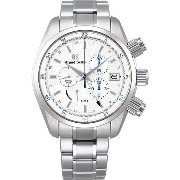 The Spring Drive Chronograph GMT movement, Caliber 9R86, was first released in 2007. Thanks to the unique one-second-a-day precision of Spring Drive and the fact that the chronograph stops at the exact moment that the button is depressed and not at the nearest ‘tick’, it was, and remains, the most accurate spring-driven chronograph in the world. This limited edition watch commemorates the 15th anniversary of the first Spring Drive Chronograph and is powered by a specially adjusted movement, Caliber 9R96, which offers an enhanced precision rate of ±10 seconds per month. The Grand Seiko lion emblem is featured in 18K yellow gold on the oscillating weight. The dial has the rugged texture of the snow surface that can be seen in the high mountains that surround the Shinshu Watch Studio in central Japan in late winter and early spring. When the daytime temperatures start to rise and the annual thaw begins, the wind carves a unique pattern as it whips across the melting snow drifts. This ephemeral and beautiful effect is captured on the dial.