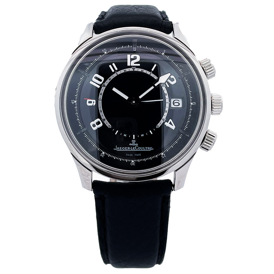Excellent condition pre-owned Jaeger LeCoultre Amvox Aston Martin 192.08.97 in a 42mmm stainless steel featuring a black dial, automatic movement on a factory strap with a JLC stainless steel folding clasp.