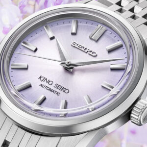 King Seiko Special Edition. Introduced in 1961 and in production until 1975,King Seiko became one of Seiko’s most technically innovative and stylish brands, noted for its sleek, dignified angularity. A newly developed slim case and the thin 6R31 automatic movement, with a frequency of 21,600 vibrations per hour, a power reserve of approximately 70 hours, and manual winding capability, make this Special Edition model exceptionally slender and elegant, with a case thickness of only 10.33 mm. In a new purple shade, “Tenjin-fuji violet,” the dial evokes the wisteria that bloom in the Kameido Tenjin Shrine in Kameido, Japan, birthplace of the original King Seiko. A major tourist attraction, founded in 1661, the shrine, with its bridge and flowers, was the subject of famed Ukiyoe artist Hiroshige Utagawa’s “In the Kameido Tenjin Shrine Compound (Kemeido Tenjin Keidai),” said to have influenced Impressionist master Claude Monet.