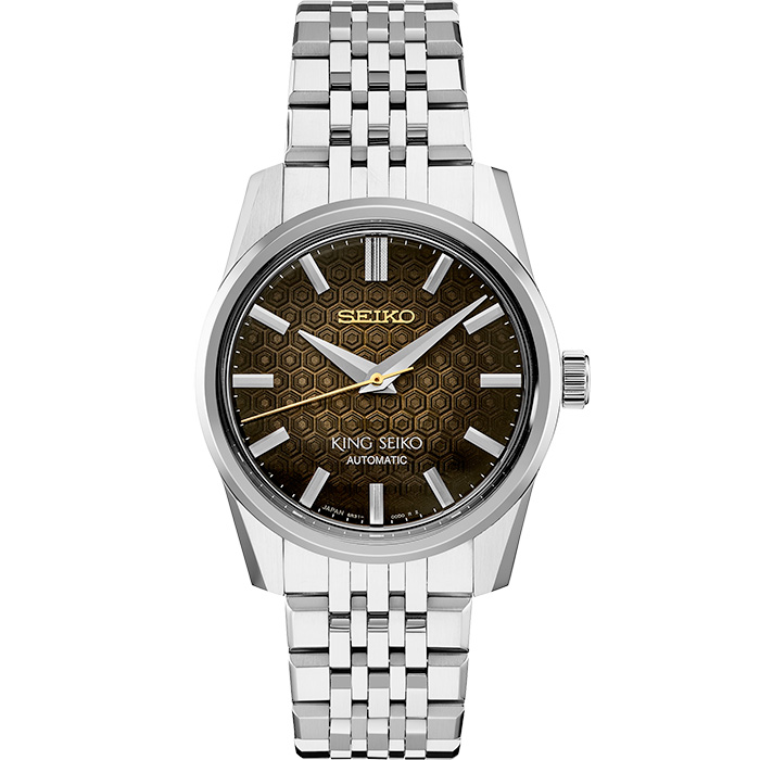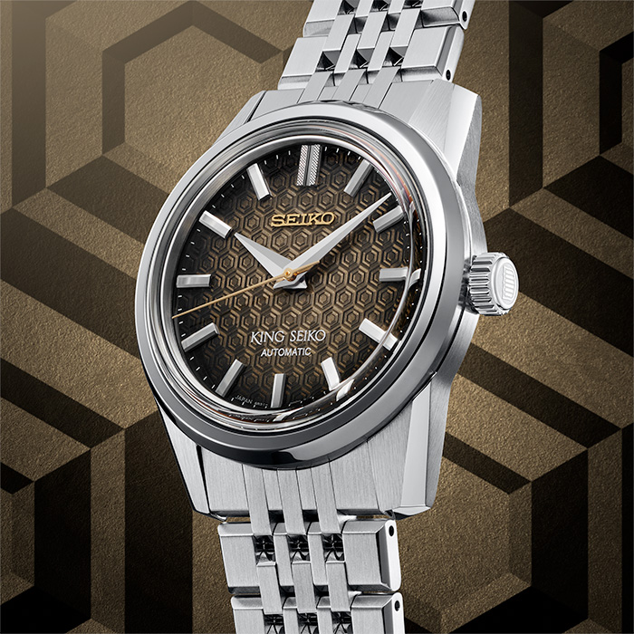King Seiko Seiko Watchmaking 110th Anniversary Limited Edition. To mark 110 years of watchmaking excellence, Seiko is highlighting its continuous dedication to evolving technology, as well as diversity, equality and the sustainable manufacturing necessary to meet environmental challenges. This landmark Limited Edition, available only in a controlled-production run of 1,200, with the serial number engraved on each caseback, expresses this vision in both its design and its materials. Introduced in 1961 and in production until 1975, the King Seiko became one of the company’s most technically innovative and stylish brands,noted for its sleek, dignified angularity. First re-interpreted last year, today’s slender and elegant King Seiko features a newly developed slim case, with a thickness of only 10.33mm, and the thin 6R31 automatic movement,with a frequency of 21,600 vibrations per hour, a power reserve of approximately 70 hours, and manual winding capability. Honoring the watch’s history,the three-dimensional dial features the new “Kameido Kikko” pattern, reflecting both “kikko-monyou”, a traditional Japanese good omen, and the pattern of the turtle shells native to the turtle-shaped Kameido,the birthplace of the brand. In a dark brown gradation inspired by the Japanese pond turtle, the dial features meticulously cut three-dimensional indices, including a separately carved 12 o’clock marker.