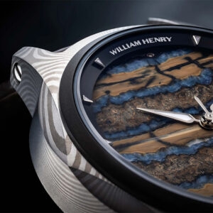 William Henry is a studio that tells stories through timeless pieces, and our first watch design is a testament to that intention. The Legacy watch collection is a perfect blend of form and function, built around the extraordinary materials that have defined us. This limited-edition model features a dial crafted from fossil mammoth tooth, relic of the giant that roamed the Earth 10,000 years ago. Occasionally discovered on the sea floor or riverbeds, each tooth or remnant must dry for about 2 years before we can start to work with it. Vacuum stabilized with resin, the finished dial reveals unique patterns and colors that have been waiting 10,000 years to become a timeless story on your wrist. The dial is housed in a forged Damascus case, built with 300 layers of stainless-steel alloys and etched to reveal a swirling tapestry in metal. The case is finished with a sapphire crystal and exhibition back revealing the Swiss automatic movement with a 38-hour power reserve. Water resistance is rated to 10 ATM/100 meters, and the hand-crafted crocodile leather strap features a custom stainless deployant clasp for easy wear and adjustment.