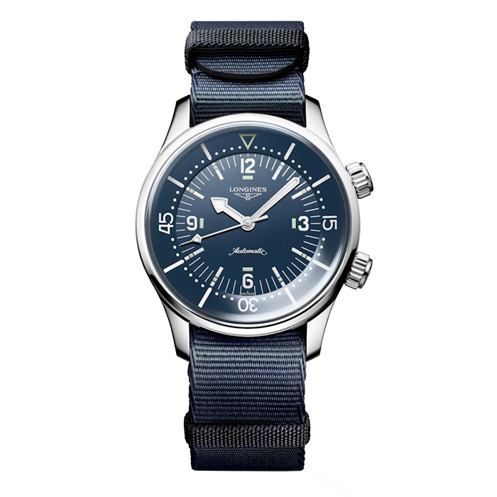 It is immediately recognisable by its two crowns and internal rotating bezel. The new LONGINES LEGEND DIVER is resurfacing with a 39 mm diameter, faithful to the original 1959 model from which it takes its inspiration.