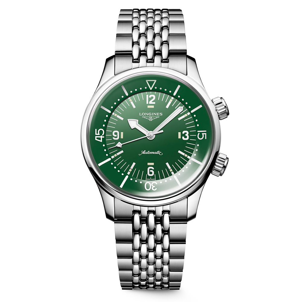 Certified as a Divers’ Watch with a water-resistance up to 30 bar / 300 metres, the model is driven by an exclusive Longines L888.6 calibre resistant to magnetic fields and equipped with a silicon balance-spring. This movement has a power reserve of up to 72 hours. The entire watch is chronometer-certified by COSC. The hours are marked by elongated indexes and raised luminescent Arabic numerals. The rhodium-plated and polished arrow-hands, coated with Super LumiNova®, mark the time with optimum visibility in all circumstances. The collection’s symbol, a diver, is stamped on the watch’s perfectly-angled screw-down case back.