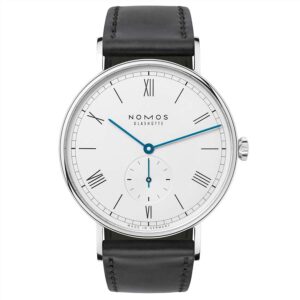 The name gives it away: The classic Ludwig model is also available as a two-hand model, Ludwig 33 duo. With a 33-millimeter diameter, this hand-wound watch is particularly suited to more slender wrists and its design is even more refined. The golden hands particularly compliment the white silver-plated dial.