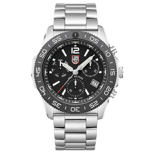 The Pacific Diver Chronograph boasts a 44mm stainless steel case with a CARBONOX™ unidirectional bezel, a vital instrument for any diver. A black dial with white numerals and indices contrasts the sand sub dials for a unique style. As with every other Luminox timepiece, this Pacific Diver incorporates Luminox Light technology, making sure that your timepiece is visible in any condition for up to 25 years.