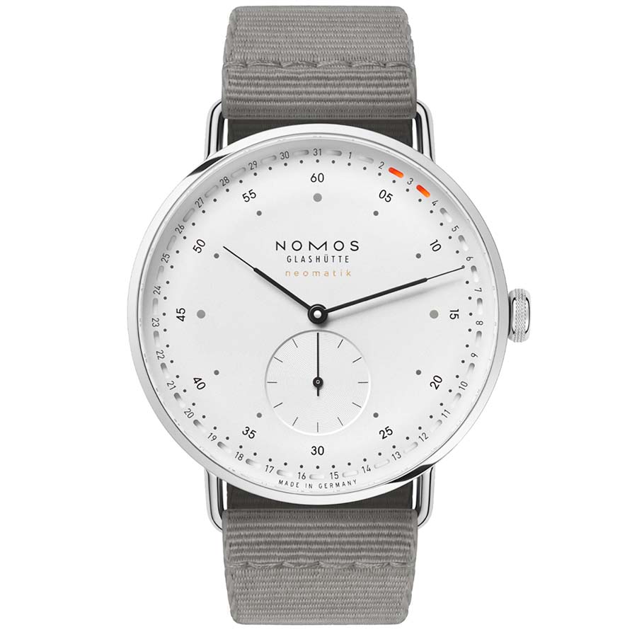 Metro neomatik 41 Update remains beautifully slender even with a diameter of just under 41 millimeters: The stainless steel case with its fine, domed sapphire crystal glass and the striking wire lugs follow the form of the wrist in dynamic fashion.