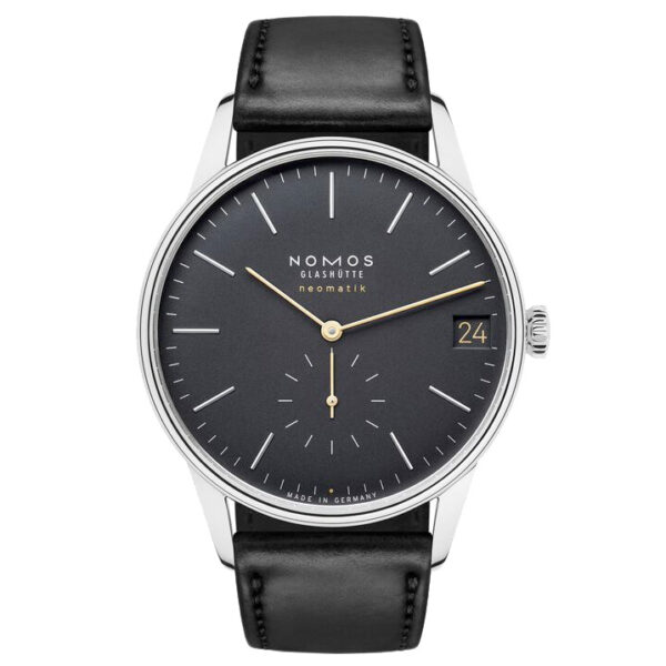 Everything about this Glashütte dress watch is elegant. From the shape of the case to the bicolor details and the patented date caliber. But the secret of its flawlessness, even for black-tie occasions, is the date window. In Orion neomatik 41 date new black, it is just as black as the dial under the domed sapphire crystal. This stylistic consistency can only be found at NOMOS Glashütte—no personal assistant or style expert in the world would advise against wearing this watch at a gala event. On the contrary!