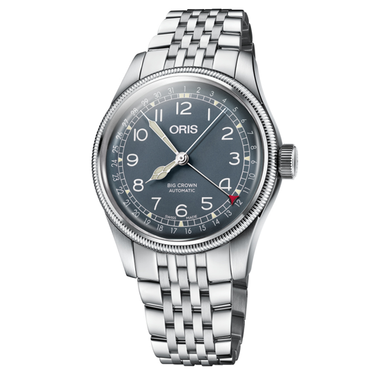 The Oris Big Crown Original in 40mm featuring a matte blue dial on stainless steel bracelet