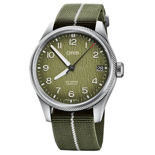 Inspired by the grasses of the Okavango Delta. The new watch is based on the Oris Big Crown ProPilot. Its green dial is inspired by the grasses of the Okavango Delta, and it comes on an exclusive green fabric strap created by Erika’s Originals (supplied with an additional brown leather strap and a Travel Pouch).