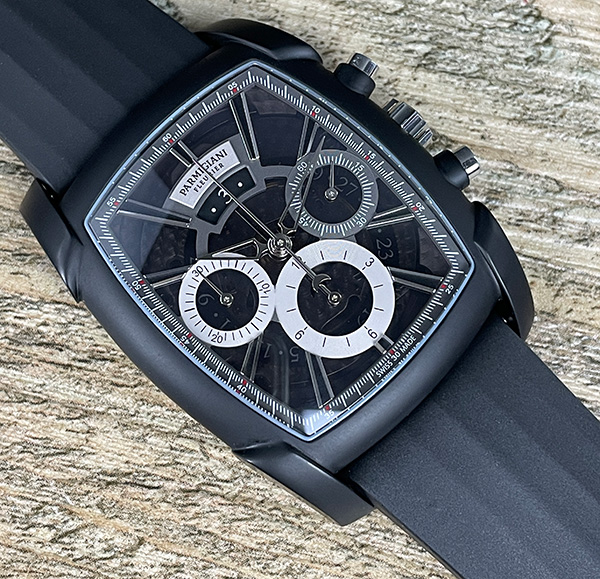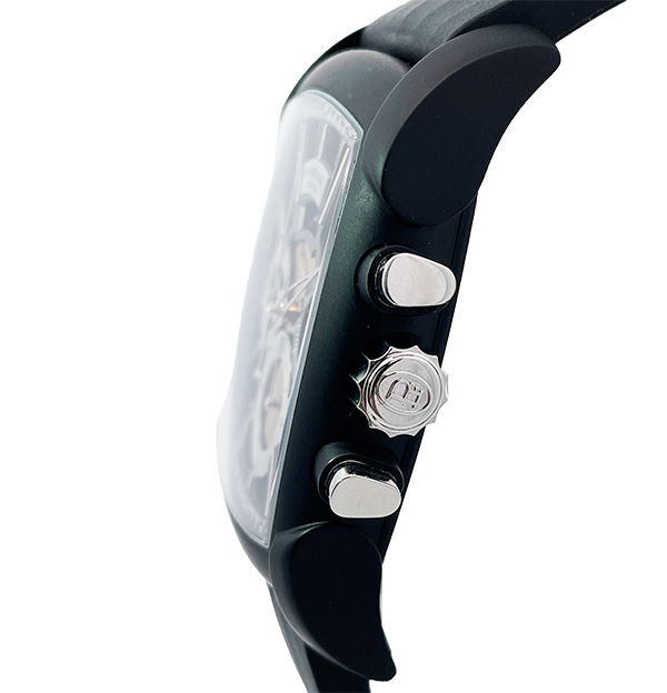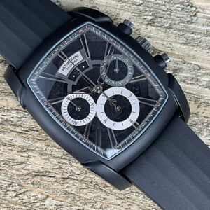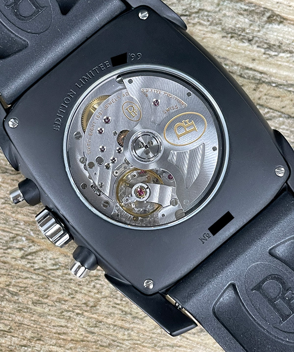 Mint condition Pre-owned Parmigiani Fleurier Kalpa KALPAGRAPHE. Limited to only 99 pieces, featuring a black PVD coated Kalpa case, skeletonized dial and black rubber strap.