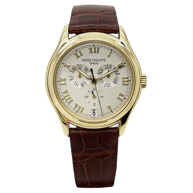 Patek Philippe Complications Triple Date in 18K yellow gold. Reference 5035/J. In excellent condition and complete with the original box.