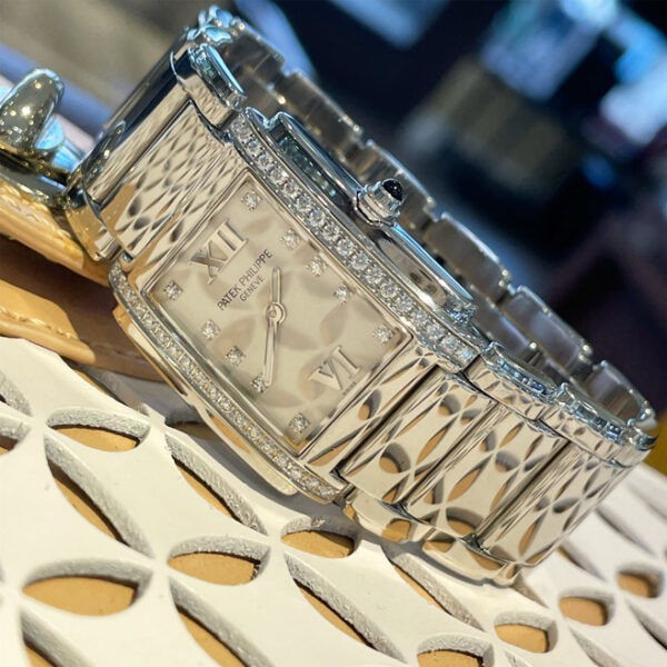 Timeless classic ladies Patek Philippe Twenty4 in stainless steel & diamonds now offered in our Pre-Owned Collection. 36 diamonds flank each side of the bezel and the dial is set with 10 diamond hour markers complemented with 2 Roman numerals. It is a modern classic timepiece that will remain timeless. This Patek Philippe Twenty4 4910/10A-011 is in good condition with normal wear.