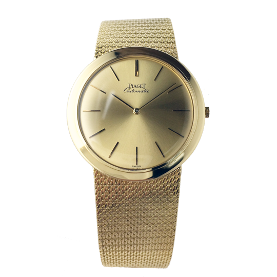 Ultra thin Piaget with the Piaget Caliber 12PI and micro rotor. On original 18K YG integral Piaget bracelet.