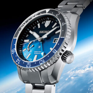 Prospex LX Sky Limited Edition. Designed for those who treat life as the ultimate adventure, the Seiko Prospex line meets every challenge with technological excellence and style. Part of a rich legacy of innovation in high-intensity timekeeping, Prospex continues to celebrate a long history of sports watch excellence with recreations and reinterpretations of landmark achievements. This extraordinary watch, available only in a limited edition of 400, with the serial number engraved on each caseback, highlights both past and present feats, with a design inspired by Seiko’s revolutionary 1968 professional diver’s watch, but powered by today’s Seiko Spring Drive movement, combining a 30-jewel automatic movement with a quartz regulator for accuracy to +/- 1 second per day, +/- 15 seconds per month. With the Spring Drive movement tested for precision by astronaut Richard Garriott on the International Space Station, this limited edition also pays tribute to space exploration with the blue and black gradated dial and sapphire bezel ring evoking the stratospheric boundary of the Earth’s sky and outer space. Crafted of light and durable titanium with a super-hard coating for nearly doubled hardness, this superbly reliable watch features a sapphire crystal with super-clear coating, and a screwdown caseback and crown, as well as a tri-fold push button release clasp. The movement, with a power reserve of approximately 72 hours, can be wound manually or automatically. Framed by a rotating GMT bezel, the dial includes a power reserve indicator, date calendar, blue GMT hand, and LumiBrite hands and markers. Water-resistant to 10 bar, 100 meters (330 feet)