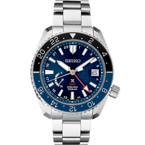 Prospex LX Collection. Designed for those who treat life as the ultimate adventure, the Seiko Prospex line follows every challenge with technological excellence and style. Powered by a Seiko Spring Drive movement, this precision timepiece combines a 30-jewel automatic movement with a quartz regulator for accuracy to +/- 1 second per day, +/- 15 seconds per month. With a power reserve of approximately 72 hours, the movement can be wound manually or automatically. Meeting ISO standards for scuba diving to depths of up to 300 meters, this powerful saturation diver is crafted of light and durable titanium with a super-hard coating for nearly doubled hardness and features a screwdown caseback and crown, as well as a tri-fold push button release clasp with secure lock and slide adjuster. The rich black dial, framed by a one-way rotating elapsed timing bezel, includes a power reserve indicator, date calendar, and LumiBrite hands and markers, and is topped by a sapphire crystal with anti-reflective coating on the inner surface. 300m Water Resistant.