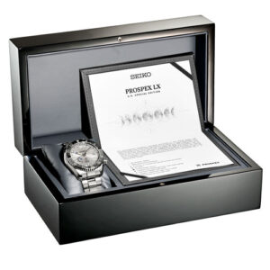 Prospex LX U.S. Special Edition. Designed for those who treat life as the ultimate adventure, the Seiko Prospex line meets every challenge with technological excellence and style. A U.S. Special Edition, this extraordinary timepiece, celebrating the role of the Seiko Spring Drive movement in space exploration, has been inspired by the moon itself, with its patterned gray dial evoking the lunar surface and the sapphire GMT bezel suggesting the light and shadows cast on the moon by other heavenly bodies. Providing exceptional precision, the Spring Drive movement, with its Tri-Synchro Regulator and proprietary Spron mainspring, combines a 30-jewel automatic movement with the quartz regulator for accuracy to +/- 1 second per day, +/- 15 seconds per month. With a power reserve of approximately 72 hours, the movement also offers manual winding capability. Crafted of light and durable titanium with a super-hard coating, this superbly reliable watch features a sapphire crystal with super-hard coating, as well as a screwdown caseback and crown, and a tri-fold push button release clasp. Included on the dial are a power reserve indicator, date calendar, blue GMT 24-hour hand, and LumiBrite hands and markers. Packaged in a special collectors’ box. 10 bar, 100M Water Resistant