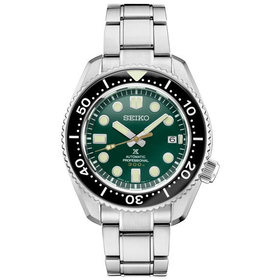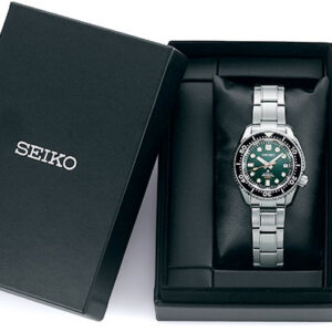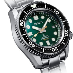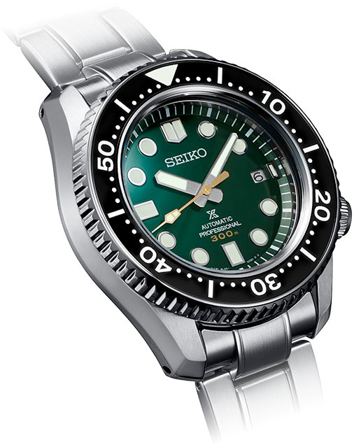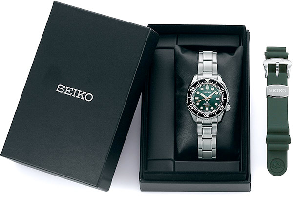 140th Anniversary Limited Edition Saturation Diver. Designed for those who treat life as the ultimate adventure, the Seiko Prospex line meets every challenge with technological excellence and style. To mark the 140th anniversary of the founding of Seiko, Prospex is celebrating its rich legacy of innovation in high-intensity timekeeping and Seiko’s role as the preferred watch for explorers under the sea, on land and in the air. Complete with a special Limited Edition caseback, this extraordinary watch, following ISO standards for mixed gas diving at depths of up to 300 meters, also pays tribute to one of the world’s leading diving destinations, Irimote Island, one of the Yaeyama Islands, off Okinawa, nicknamed “the Galapagos of East Asia,” with a rich “Island Green” theme reflecting the verdant primeval forests of Irimote. Featuring a durable one-piece stainless steel case with super-hard coating, this landmark timepiece includes a black ceramic uni-directional rotating elapsed timing bezel surrounding a green dial with date calendar and large LumiBrite markers and hands designed for enhanced legibility. For deep sea reliability, this saturation diver’s watch also offers an anti-reflective sapphire crystal, screwdown crown, stainless steel bracelet with super-hard coating, and tri-fold push-button release clasp with slide adjuster. Designed for increased torque, the 26-jewel caliber 8L35 automatic movement, assembled expressly for diver’s watches at the Shizukuishi Watch Studio, offers a frequency of 28,800 vibrations per hour, a power reserve of approximately 50 hours, and manual or automatic winding. Includes an additional green silicone strap. 300m Water Resistant