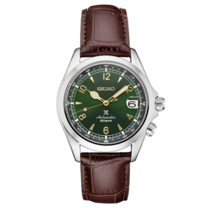 Prospex Alpinist Mechanical GMT. Designed for those who treat life as the ultimate adventure, the Seiko Prospex line meets every challenge with technological excellence and style. Part of a rich legacy of innovation in high-intensity timekeeping, Prospex continues to celebrate a long history of sports watch excellence with recreations and reinterpretations of landmark achievements. Inspired by Seiko’s first sports watch, the 1959 Alpinist, this rugged, yet stylish, watch features the iconic wedge-shaped markers, bold numerals and stylized hands of the original, along with 24-hour GMT timing. An upgraded curved sapphire crystal with anti-reflective inner coating adds reliable visibility, while the new inner rotating compass bezel makes it ideal for hiking and outdoor activities.