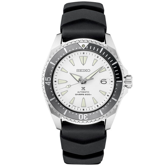 Titanium Automatic 200m Diver. Designed for those who treat life as the ultimate adventure, the Seiko Prospex line meets every challenge with technological excellence and style. Part of a rich legacy of innovation in high-intensity timekeeping, Prospex continues to celebrate a long history of sports watch excellence with recreations and reinterpretations of landmark achievements. With its strong, yet smooth lines, and signature arrow-shaped bezel notches, this versatile watch re-imagines Seiko’s popular 2008 diver’s watch, crafted, like the original of light and durable titanium, with a super-hard coating for enhanced strength. The high-visibility white dial, framed by a black and gray one-way rotating elapsed timing bezel, features a date calendar and LumiBrite hands and markers. Including an anti-reflective sapphire crystal, this perfectly balanced timepiece offers a screw down crown and caseback, and black silicone strap. Powered by a 24-jewel automatic movement with a frequency of 21,600 vibrations per hour, a power reserve of approximately 70 hours, and manual and automatic winding capability, this exceptional watch follows ISO standards for scuba diving to depths of up to 200 meters. 200m Water Resistant
