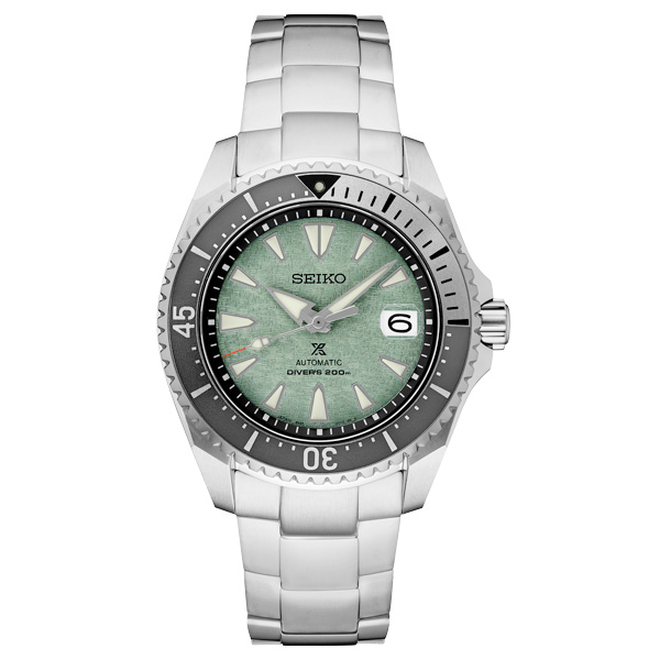 Prospex U.S. Special Edition SPB349 Designed for those who treat life as the ultimate adventure, the Seiko Prospex line meets every challenge with technological excellence and style. Part of a rich legacy of innovation in high-intensity timekeeping, Prospex continues to celebrate a long history of sports watch excellence, leading the way with new advances, while recreating and reinterpreting landmark achievements. Expressing the beauty and mystery encountered by intrepid explorers of undersea caves, this extraordinary design, available exclusively as a U.S. Special Edition, features a textured light green dial evoking the changing tones of mineral and stone deposits on cave walls, as well as a uni-directional rotating elapsed timing bezel in a subtle two-tone to suggest the duality of light and dark within. Crafted of light and durable titanium, with a scratch resistant super-hard coating, the distinctive case and bracelet are sharply angled, with the precise links creating an arrow shape.