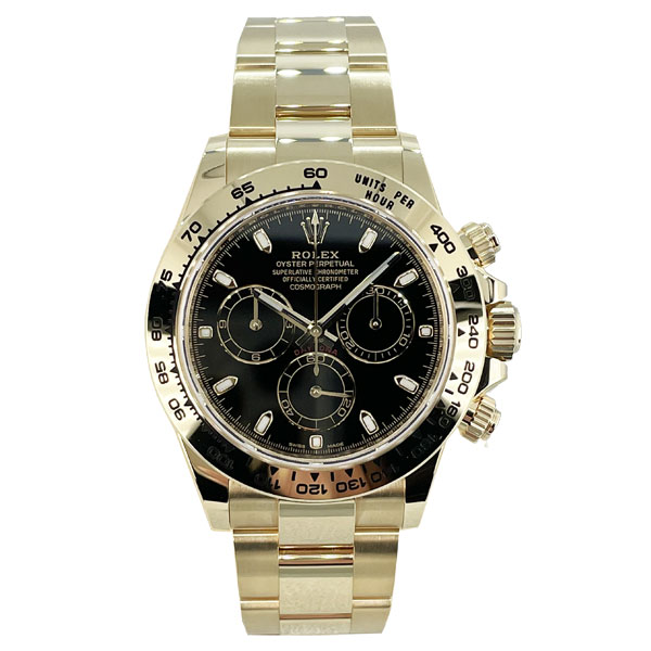 Unworn Rolex Daytona 116508 in 18K yellow gold and featuring a black dial.