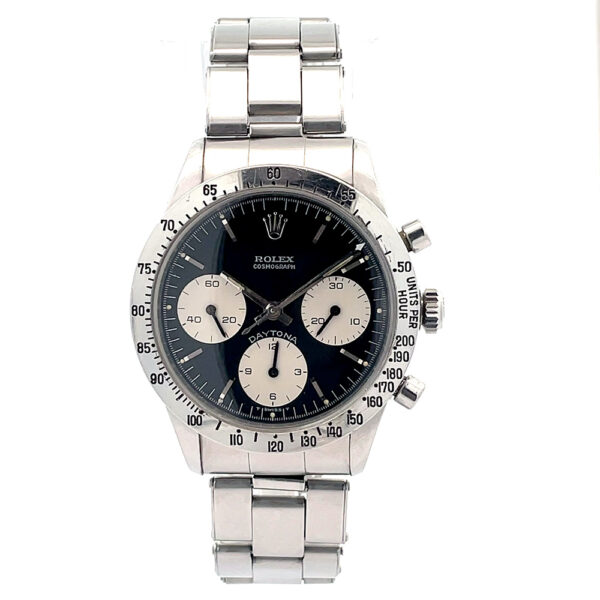 Wonderful condition vintage Rolex Cosmograph Daytona originally purchased in 1971 (serial dates to 1968) on rivit Oyster bracelet. Original box, paperwork and Cosmograph Daytona booklets included.
