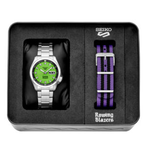 Introducing the Seiko 5 x Rowing Blazers 2022 SRPJ59. This Rowing Blazer Collection is limited to 888 pieces and comes with an additional coordinating strap.