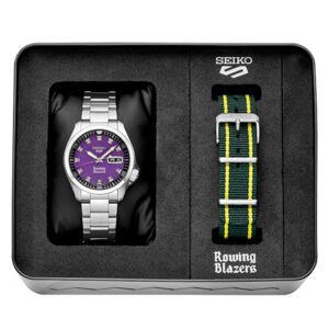 Introducing the Seiko 5 x Rowing Blazers 2023 SRPJ69. This Rowing Blazer Collection is limited to 888 pieces and comes with an additional coordinating strap.