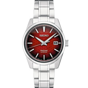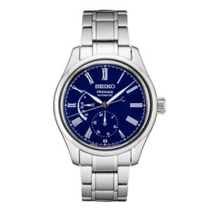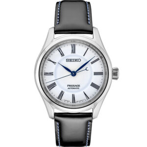 A tribute to the famed modernist clock design of Riki Watanabe and the craftsmanship of enamelwork masters, this sophisticated watch highlights a range of Japanese artistic achievement, from intricate ancient traditions to masterful contemporary minimalism. The clean white dial, with power reserve indicator and calendar subdial, showcases both the unique depth of fine enamel and the simplicity of Watanabe’s bar indices and distinctive hands.